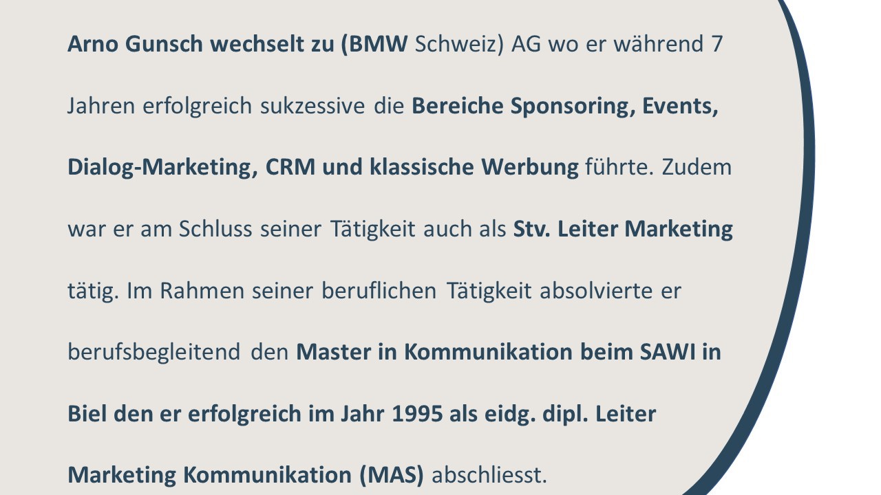 Marketing Director Stv BMW Schweiz. Start Internet 1.0